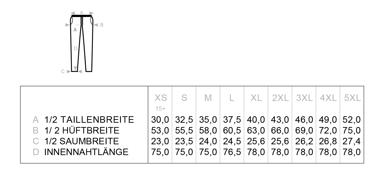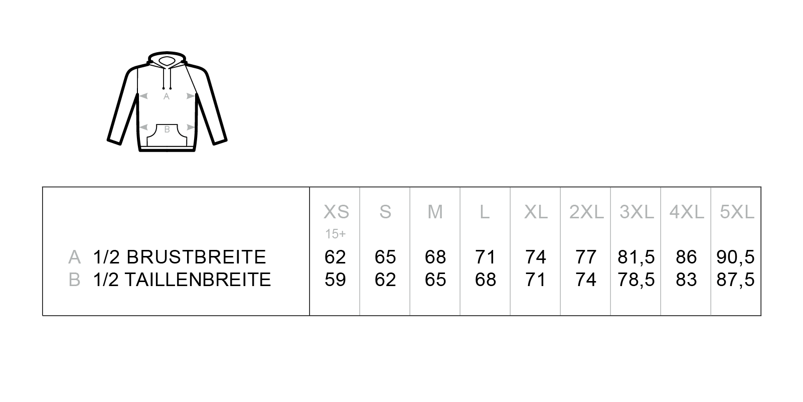 Alle Konfektionsgrößen im Überblick