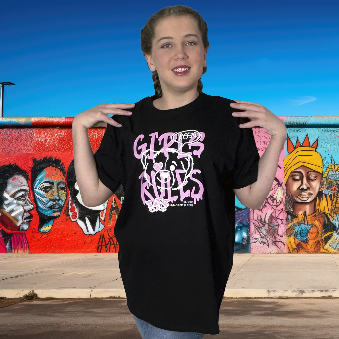 Der klassische Schnitt macht das Girls Rules Shirt vielseitig kombinierbar – perfekt mit Hoodie, Jogger oder Denim für einen selbstbewussten Streetwear Look.